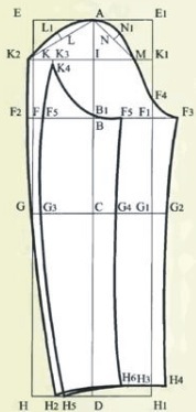 Проводим контур нижней части рукава по точкам К 4 F5 G3 Н5 Н6 G4 F6 В1 К4.
